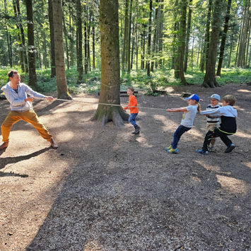 Neben dem freien Spiel wollen wir gemeinsam auf Entdeckungsreise gehen, Tiere und Kräuter kennenlernen, Sinnesspiele und Barfußpfade erleben, Naturkunstwerke kreieren, Laubhütten zum Verstecken bauen, Schnitzen, Geschichten hören, Lieder singen, Gemeinschaft erleben, einfach nur in der Hängematte entspannen u.v.m.